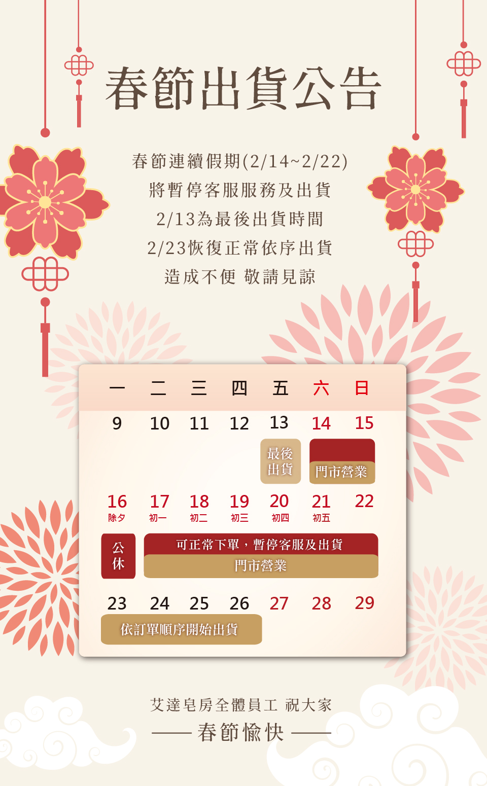 【2026春節假期,出貨時間調整公告】